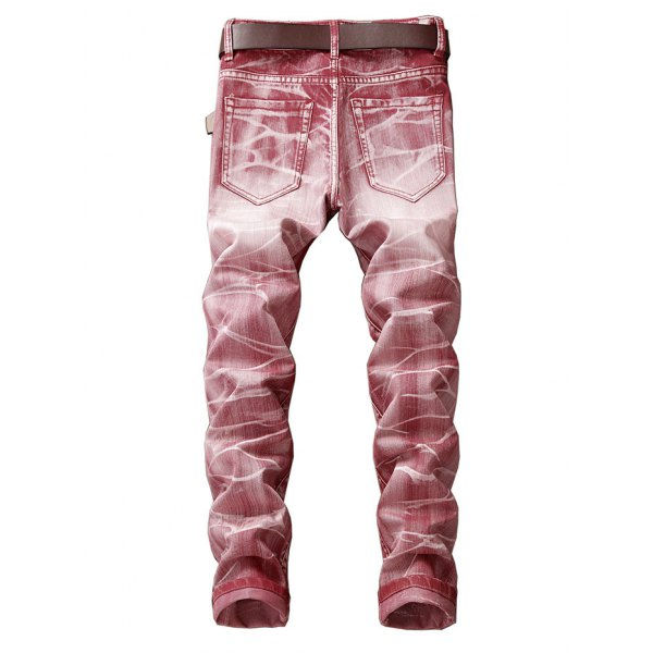 Narrow Feet Smog Print Distressed Jeans - Red 36
